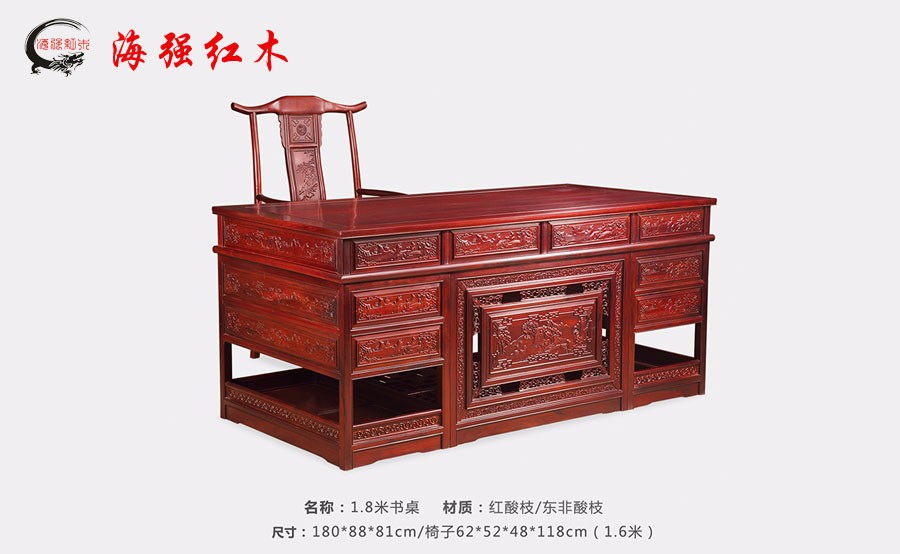名稱 : 1 . 8 米書桌材質(zhì):紅酸枝 l 東非酸枝