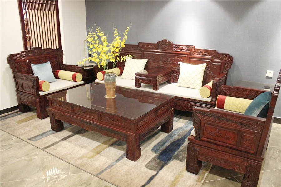 此款展示為7件套,適合小戶型擺放,如需購買十件套大客廳沙發,請點擊:漢宮春曉沙發十一件套